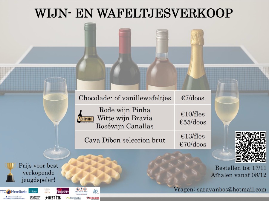 Het begint intussen een traditie te worden, en die zetten we graag verder: onze jaarlijkse wijn- en wafeltjesverkoop ten voordele van de werking van onze club.